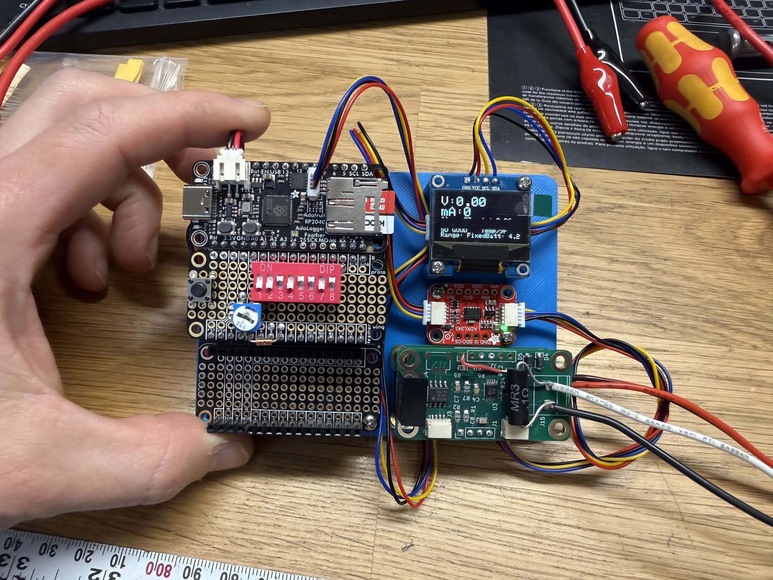 The function of this is to monitor and log voltage, current, temp, and/or acceleration over medium term intervals (multiple minutes to multiple hours). It is especially optimized to capture and record sudden changes in values without filling the memory card with irrelevant values. For example, I have a friend who’s car has a weird intermittent electrical issue, and this is designed so it can be plugged into the car and left alone while driving in hopes of capturing the voltage fluctuations when the issue happens.