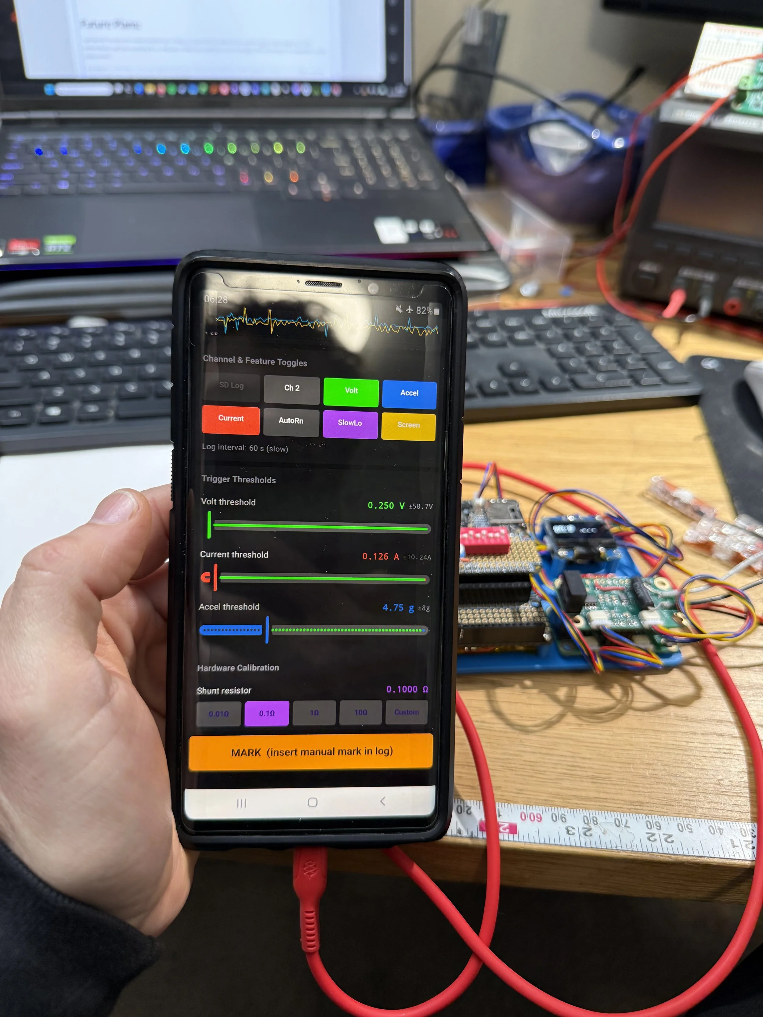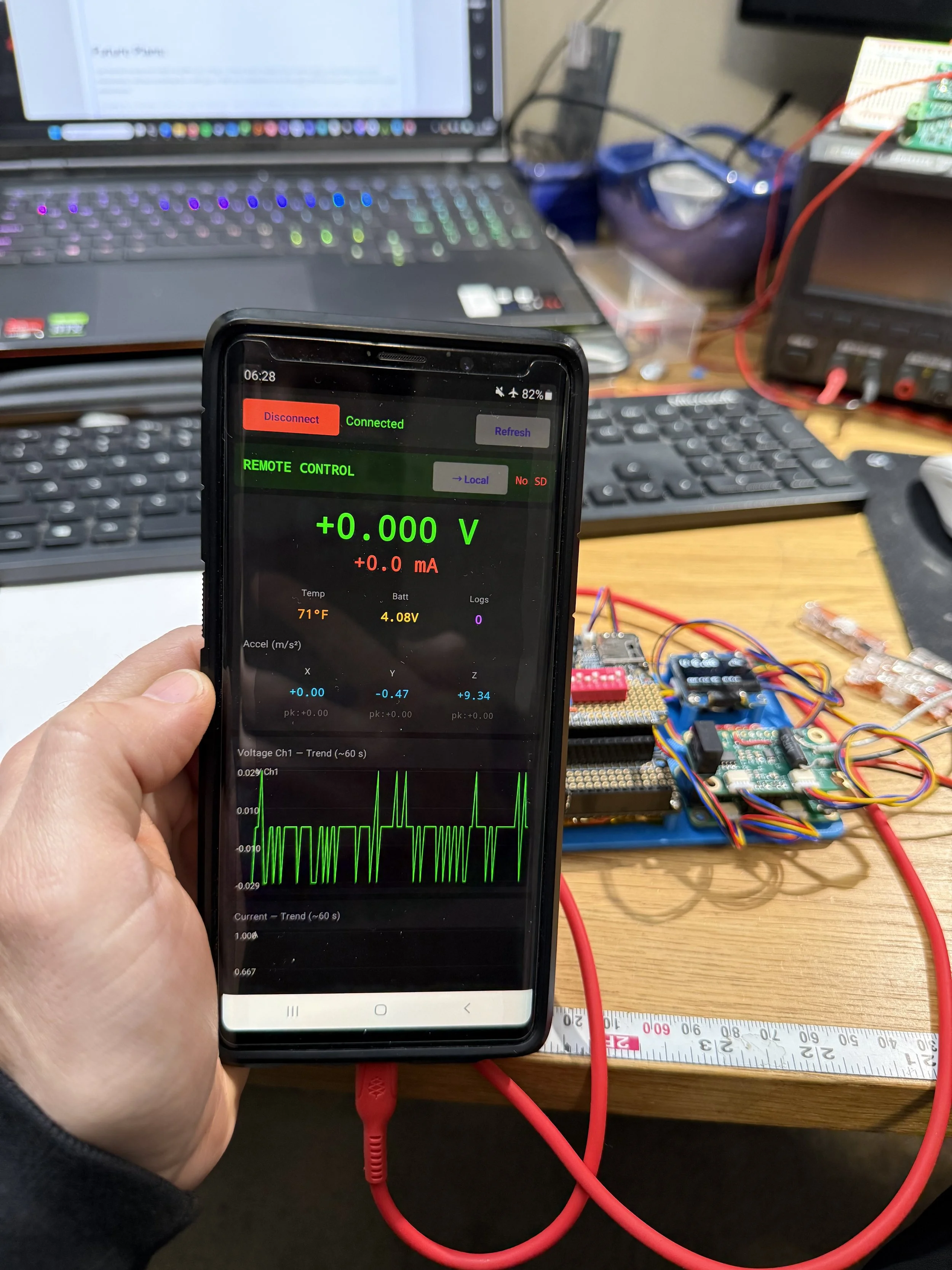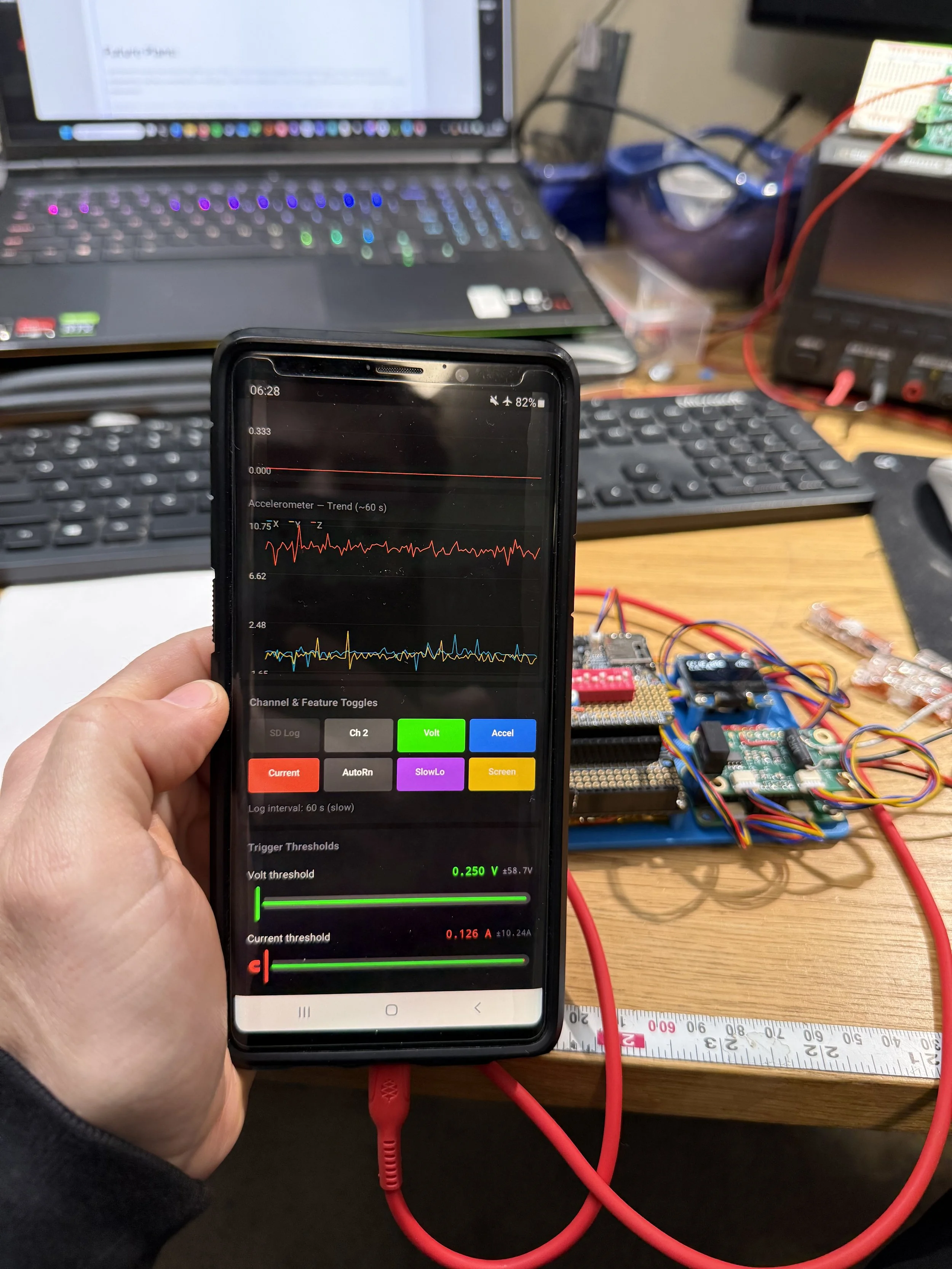 Including the acceleration on this was a good familiarization exercise, but in the future I think dedicated acceleration and voltage / current logging makes more sense, mostly from a GUI perspective.